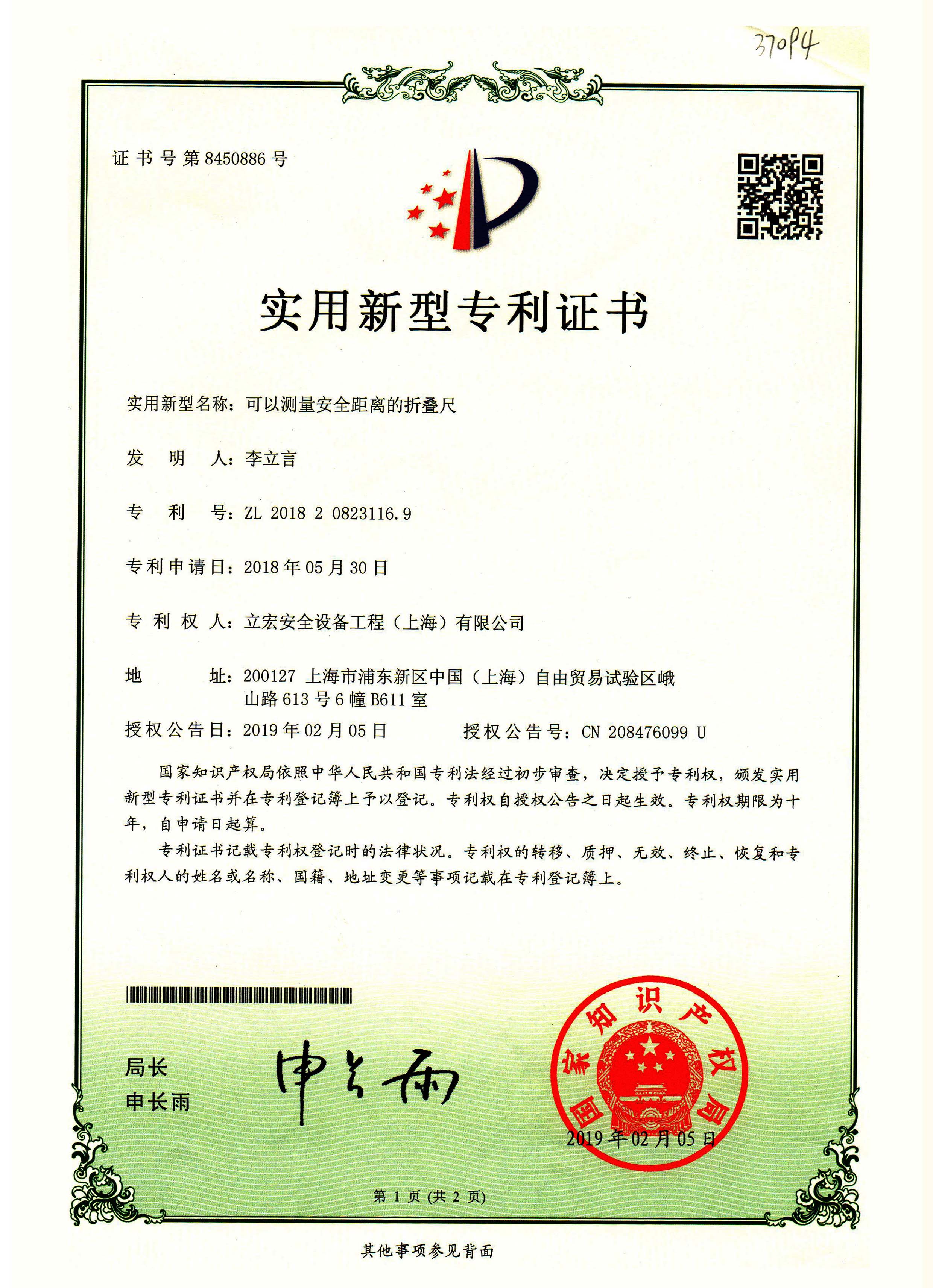 實(shí)用新型名稱(chēng):可以測(cè)量安全距離的折疊尺專(zhuān)利號(hào):ZL201820823116.9