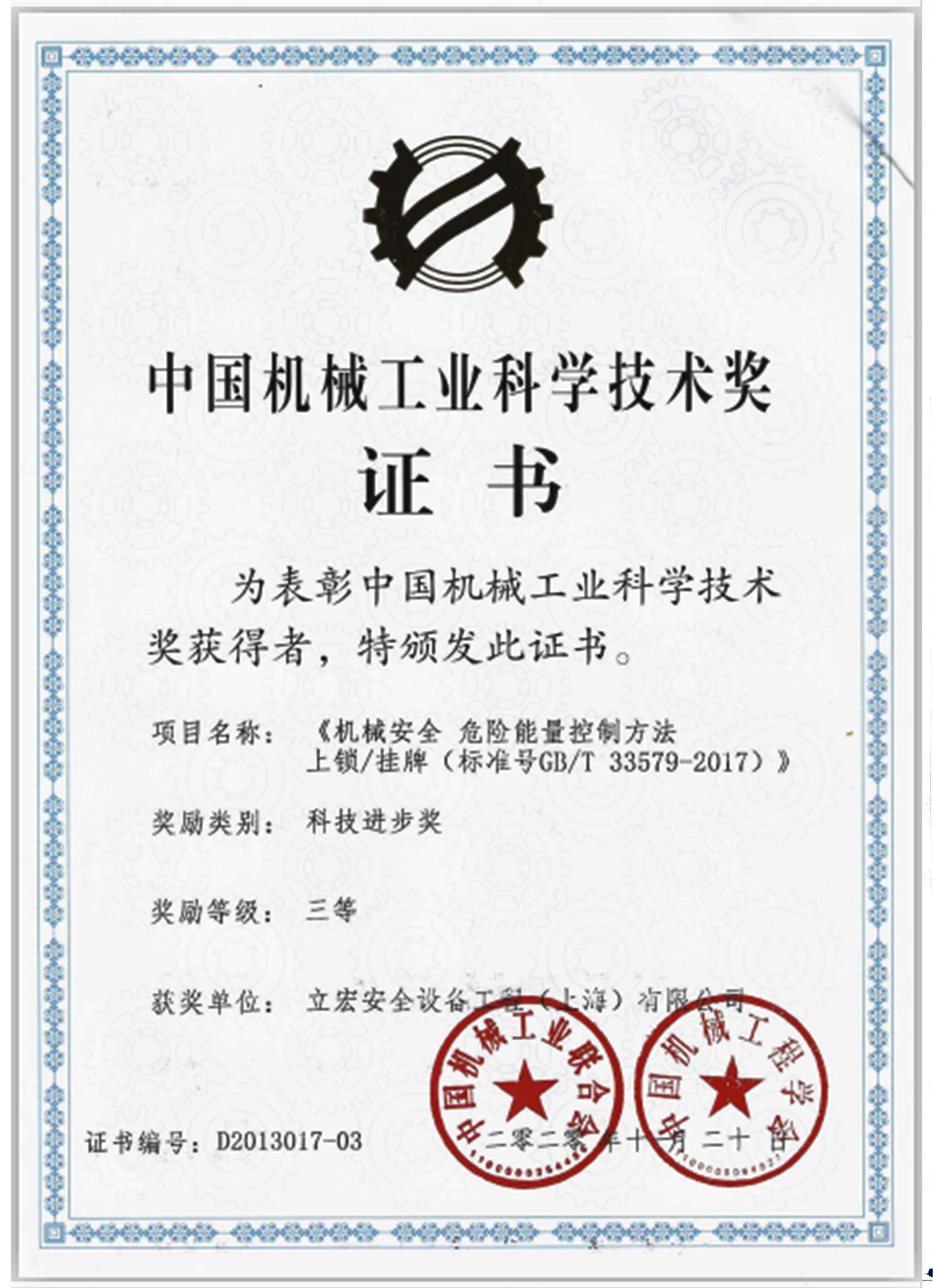 中國(guó)機(jī)械工業(yè)安全衛(wèi)生協(xié)會(huì)安全防護(hù)裝備分會(huì)會(huì)長(zhǎng)單位立宏安全設(shè)備工程上海有限公司